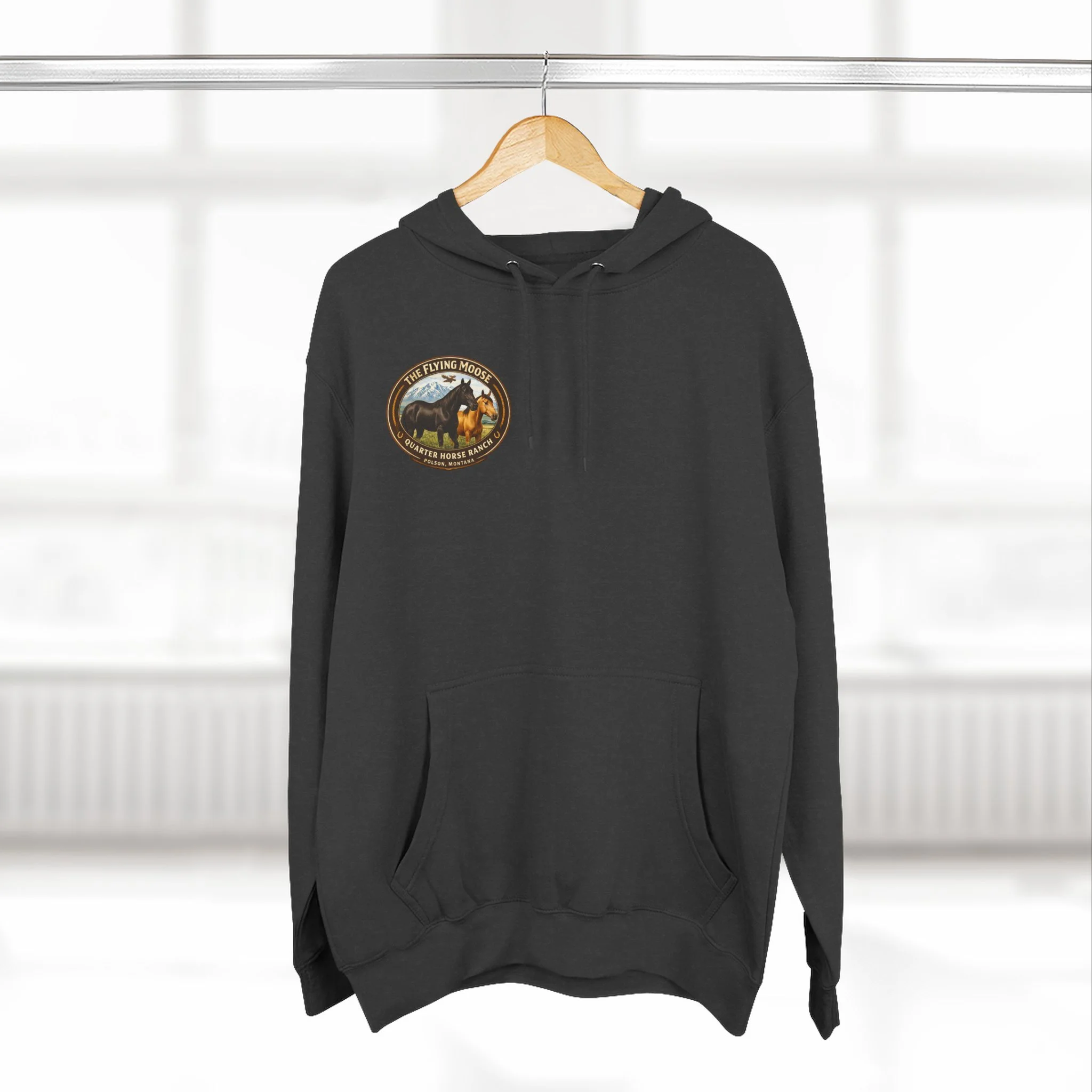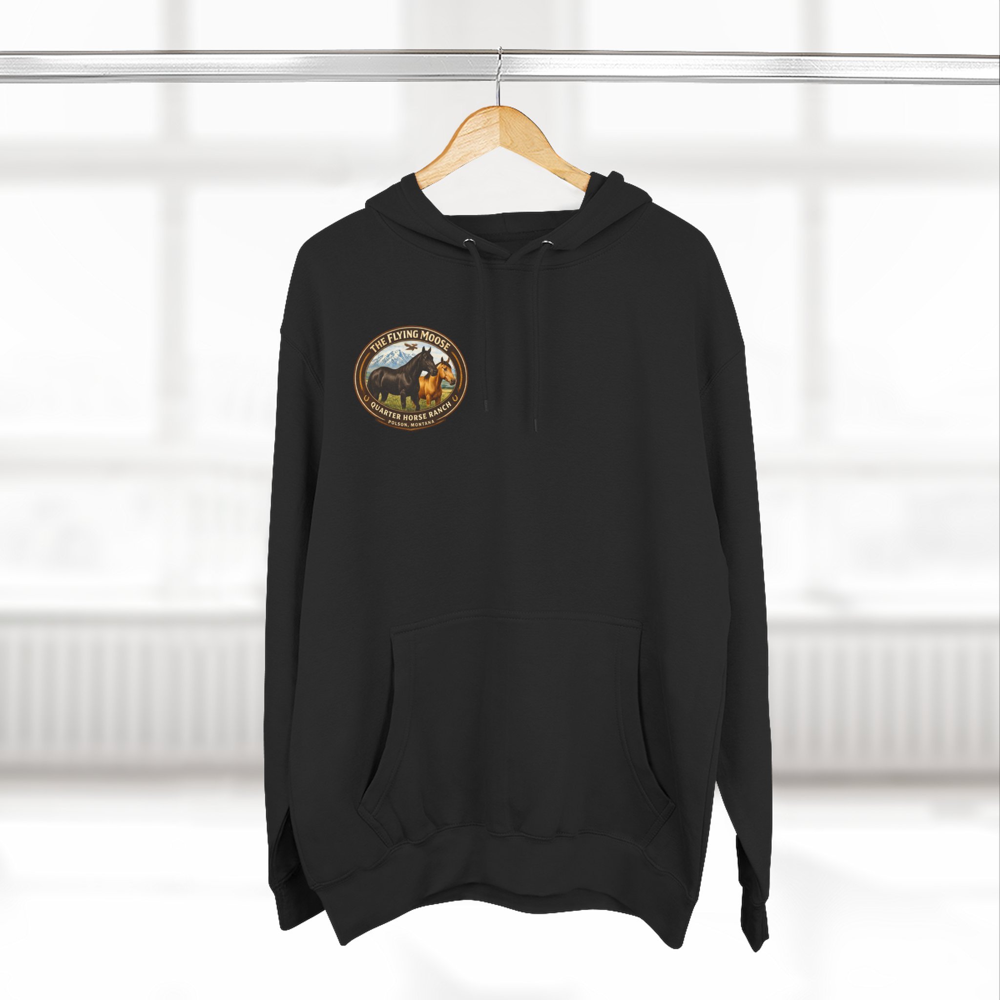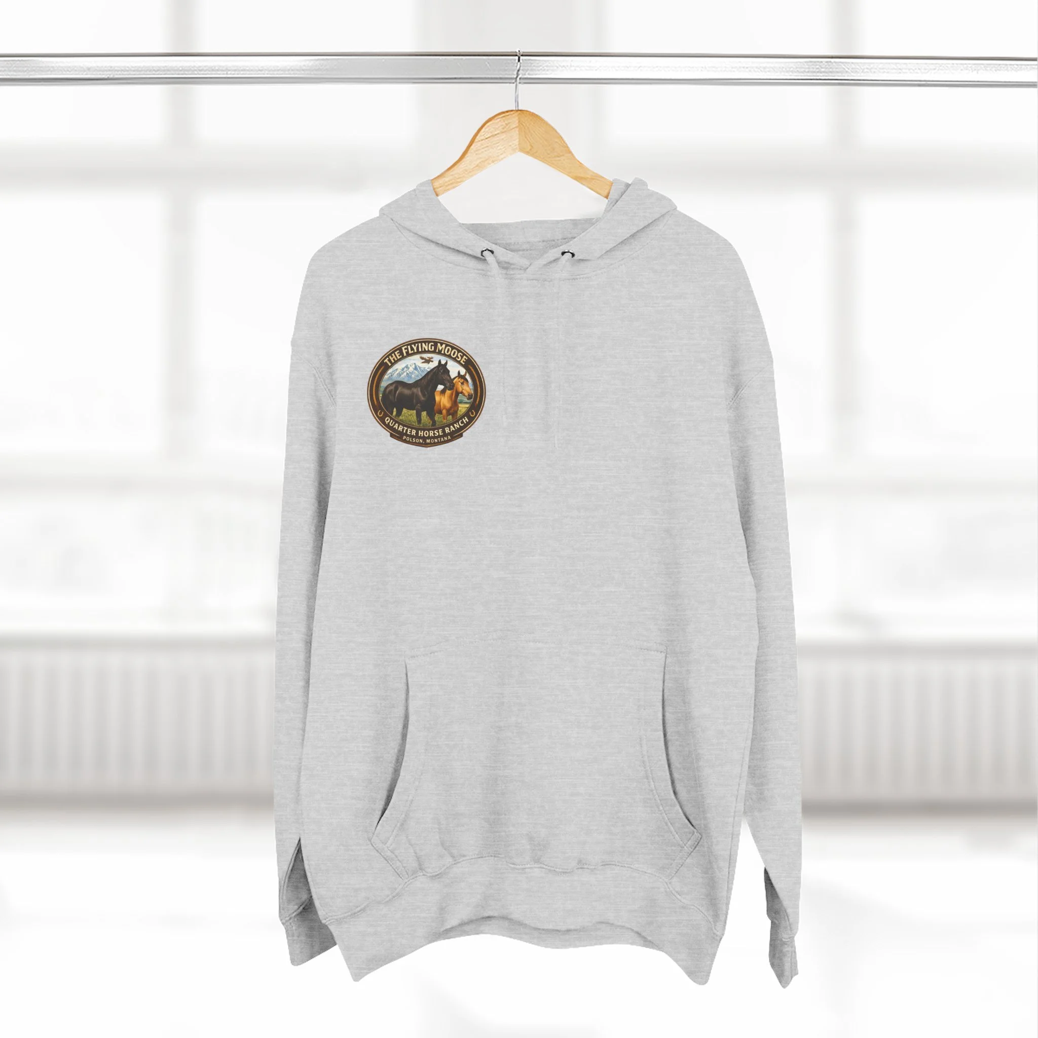 This hoodie carries the slow, wide-open feeling of the ranch. The light heather fleece and soft 3-end interior wrap around you like a morning by the corral — cool air, coffee in hand, and the weight of the day felt in your shoulders. Subtle embroidered artwork on the chest and a bold screen print across the back give it character without shouting. The roomy kangaroo pocket and adjustable hood are built for practical warmth: pull the drawstrings tight when wind comes up, or leave them loose while you toss hay and talk shop. It settles into daily life — worn on early chores, evening rides, or just when you want something honest and sturdy that still feels soft against the skin.