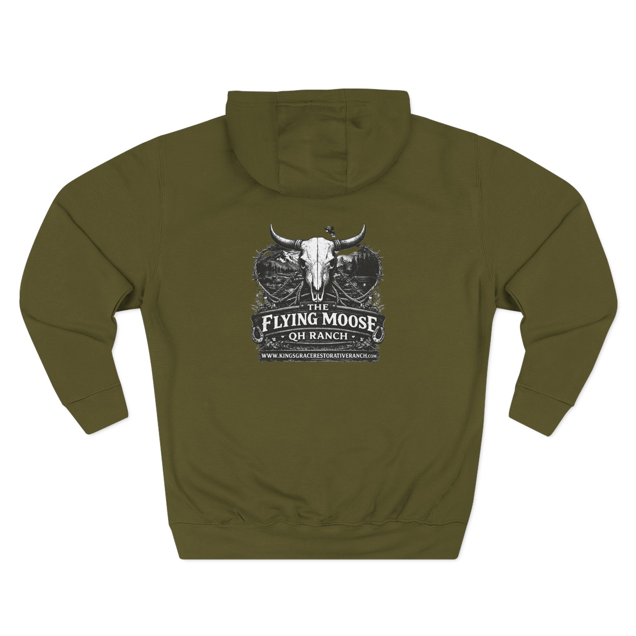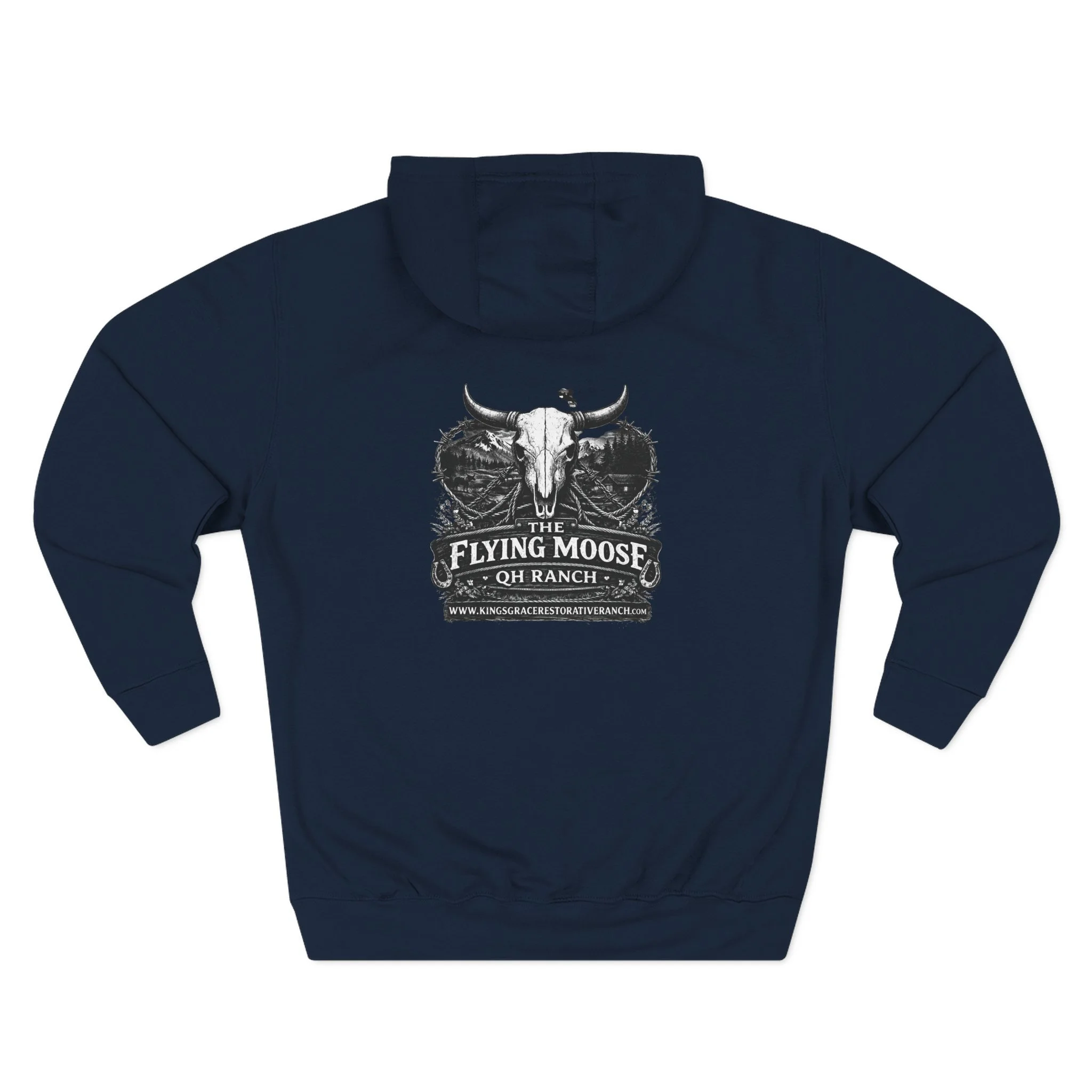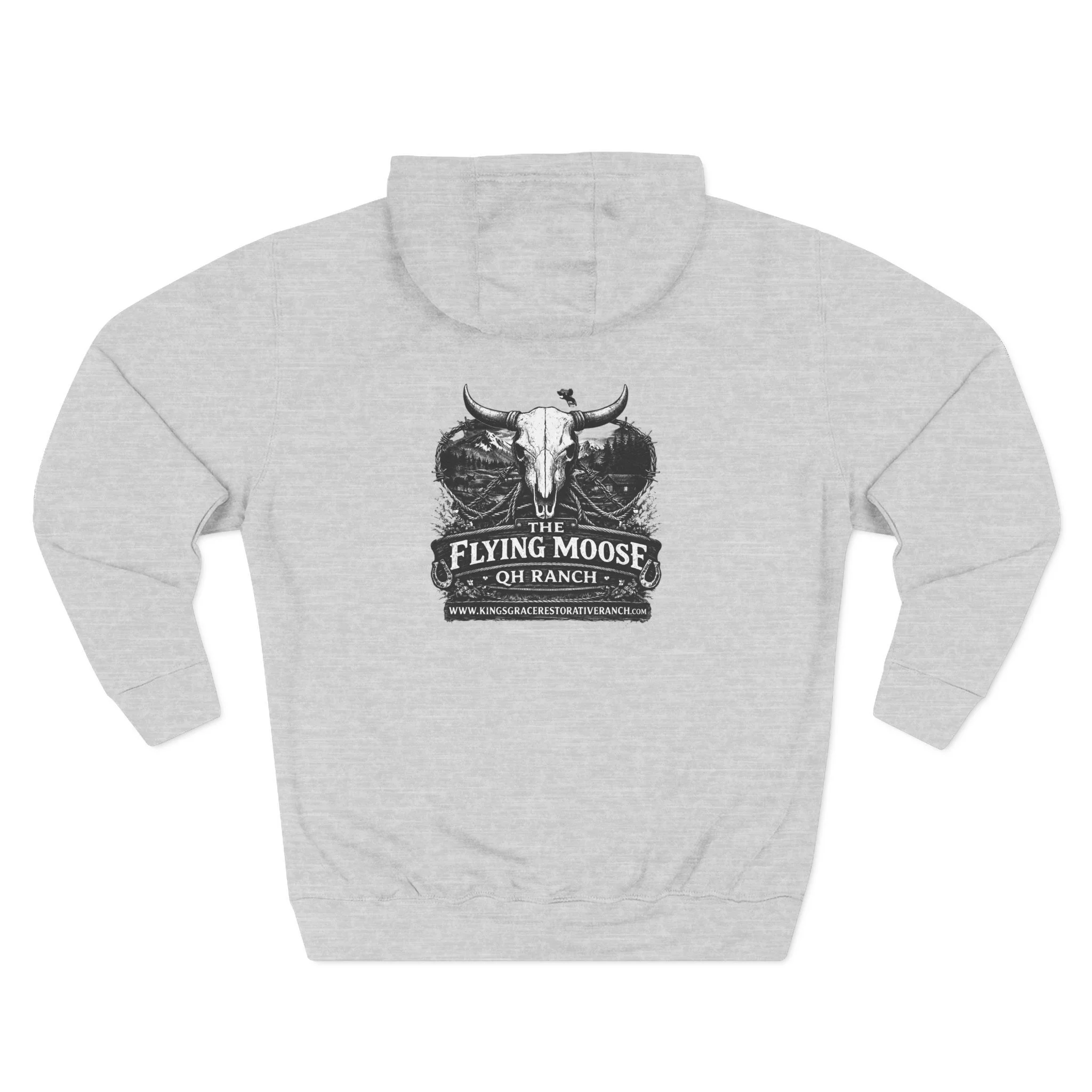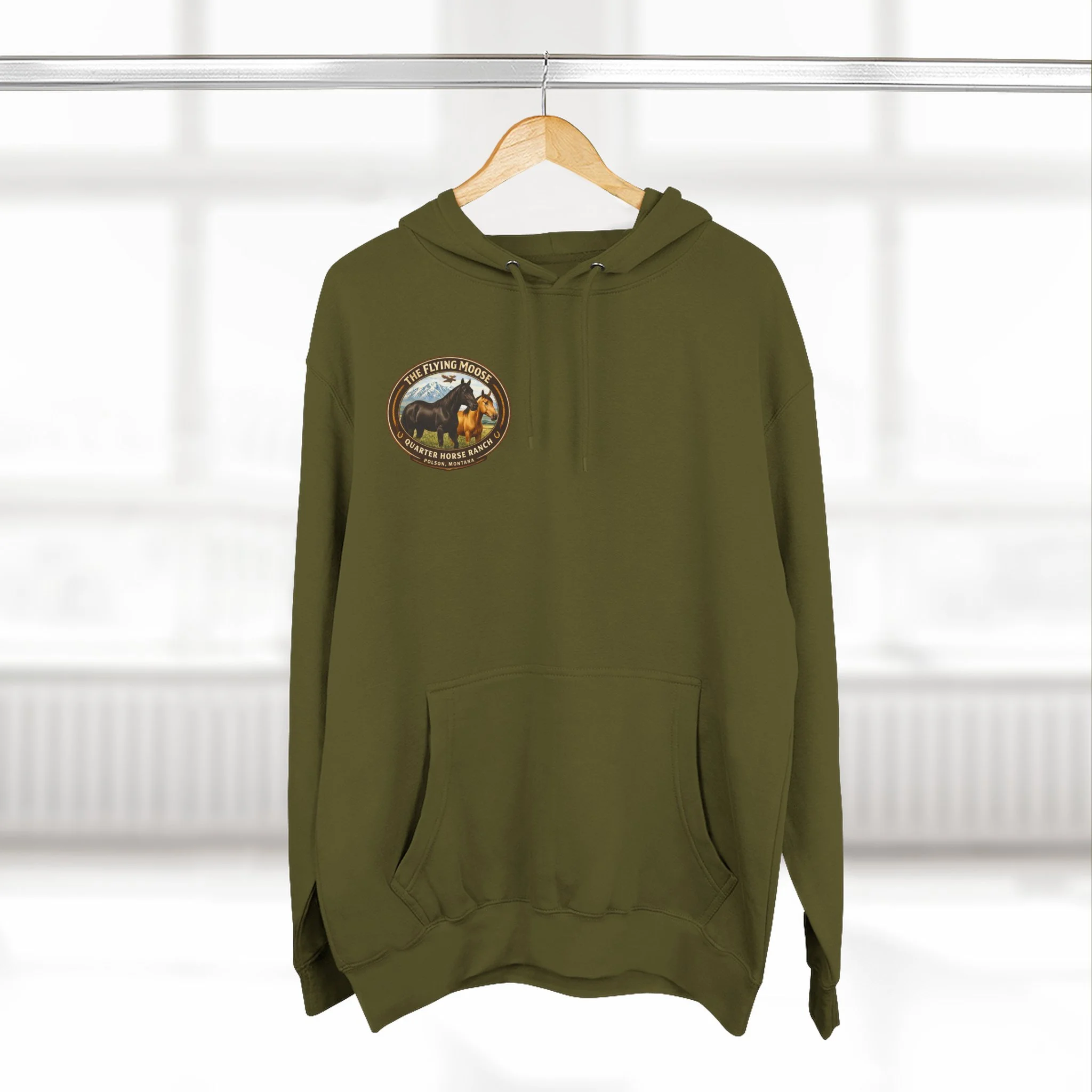This hoodie carries the slow, wide-open feeling of the ranch. The light heather fleece and soft 3-end interior wrap around you like a morning by the corral — cool air, coffee in hand, and the weight of the day felt in your shoulders. Subtle embroidered artwork on the chest and a bold screen print across the back give it character without shouting. The roomy kangaroo pocket and adjustable hood are built for practical warmth: pull the drawstrings tight when wind comes up, or leave them loose while you toss hay and talk shop. It settles into daily life — worn on early chores, evening rides, or just when you want something honest and sturdy that still feels soft against the skin.